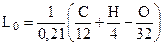 Расчёт. Стехиометрическое количество воздуха, теоретически необходимое для полного сгорания 1 кг топлива и состава С+Н+О (воздух принимают как 0,21 объёмных частей кислорода и 0,79 объёмных частей азота)