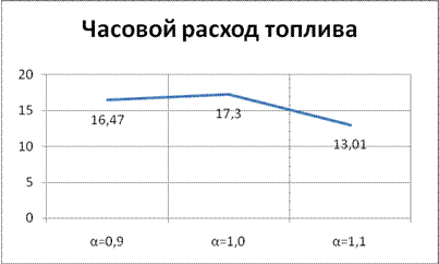 Температура газов в камере сгорания растет с увеличением коэффициента избытка окислителя α, имеет максимальное значение при α=1 и уменьшается с уменьшением α. Это значит, что при α<1 будет иметь место увеличение подогрева рабочей смеси, что ведет к увеличению ее объема, а значит к тому, что меньше свежего заряда будет попадать в цилиндр и коэффициент наполнения будет уменьшаться. При α=1 температура максимальна и коэффициент наполнения, в свою очередь, имеет минимальное значение. При α>1 температура в цилиндре уменьшается, подогрев смеси также уменьшается, а коэффициент наполнения увеличивается.