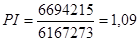 Основными интегральными показателями эффективности проекта являются: 1)индекс прибыльности, или коэффициент дисконтированного дохода (PI); 2)чистый приведенный доход, или чистый дисконтированный доход (NPV); 3)внутренняя норма рентабельности, или предельная эффективность капиталовложений (коэффициент рентабельности инвестиций) (IRR). Для определения этих показателей используются дисконтированные суммы поступлений и выплат. Сумма поступлений включает в себя доходы от работы ЧП «Левинцов». Сумма выплат включает в себя постоянные издержки, переменные издержки, налоги (единый налог на вмененный доход), выплаты процентов по кредиту. Для данного бизнес-плана все три показателя эффективности реализации проекта рассчитываются в соответствии с предполагаемым реалистическим вариантом развития событий. Коэффициент дисконтирования во всех трех вариантах одинаковый и принимается равным учетной ставке Банка России (21% годовых). Очевидно, что если предполагаемые поступления будут соответствовать пессимистическому сценарию, основные интегральные показатели будут, ниже, а если оптимистическому Сценарию — выше тех, которые приведены в данном бизнес-плане. Дисконтированная сумма поступлений, приведенная к настоящему уровню, равна 6 694 215 руб., а дисконтированная сумма выплат, также приведенная к настоящему уровню, равна 6 167 273 руб. Индекс прибыльности, или коэффициент дисконтированного дохода (PI), для эффективных проектов не должен быть меньше единицы. Этот индекс определяется отношением дисконтированной суммы поступлений к дисконтированной сумме выплат: