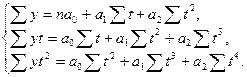 Выявим модель тренда (уравнение параболы) для определения тенденции.