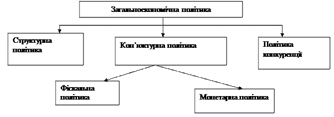 Рис. 2.1. Зв'язок монетарної політики із загальноекономічною політикою держави Головним завданням кон'юнктурної політики є забезпечення рівномірного розвитку економіки через згладжування коливань у кон'юнктурних процесах із метою досягнення загальноекономічної рівноваги. Таке згладжування може забезпечуватися методами як монетарної, так і фіскальної політики, або ж обома одночасно. Механізм взаємозв'язку монетарної та фіскальної політики як складових кон'юнктурної політики показано на рис. 2.2.