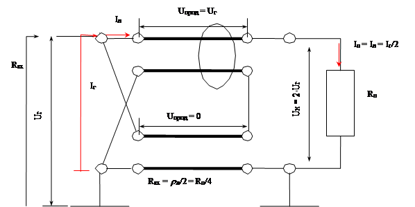 Рис. 4.1.1 ТДЛ с коэффициентом трансформации ј Предполагается, что линии достаточно разнесены в пространстве и между их проводниками не образуется дополнительных магнитных и электрических связей. В этом случае, чтобы каждая линия была нагружена на согласованное сопротивление. Необходимо выполнить условие: Rн = N×rл (4.1.1) Откуда: