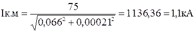 Из двух значений критической индуктивности выбираем большее; выбираем Lкр2 =0.001422098 Гн и подставляем в уравнение: Lcd =LKP Lя -abLф =0.001422098-0.00171-2 0.00021=-0.00070 Гн Так как значение Lcd получилось отрицательное, следовательно дросселя не существует, т.к. Lcd отрицательное. То данная схема уже обеспечивает сглаживающую пульсацию тока. Большенство промышленных ТП снабжено быстродействующей защитой, которая при коротком замыкании блокирует или сдвигает к границе инверторного режима управляющие импульсы до включения очередного по порядку включения тиристора. Поэтому при внешних и внутренних к.з. в этих ТП аварийные токи протекают по двум плечам трехфазной мостовой схемы и двум фазам вторичной обмотки трансформатора, т.е. имеет место двухфазное к.з. трансформатора. Амплитуда и продолжительность протекания аварийного тока при отпирание тиристоров в передающей группе РТП с раздельным управлением и при нарушении соотношения α1 +α2 ≥1800 в РТП с совместным управлением не превосходят их значений при внешнем к.з. При внешних к.з. расчет токов ведется в предположении, что угол регулирования ТП α =0, при этом токи к.з. максимальны. Для нахождения ударного тока глухого внешнего к.з. (к.з. на зажимах ТП до СД) вначале находится амплитуда базового тока к.з.: