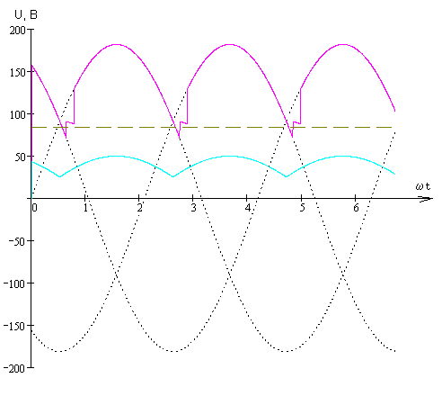 Рис.2.4. 3.1.Статические режимы работы ТП На графике мгновенного значения выпрямленного напряжения на выходе преобразователя /рис 3.1/ наносится линия постоянной составляющей (среднего значения) напряжения на выходе преобразователя и напряжения на якоре электродвигателя.