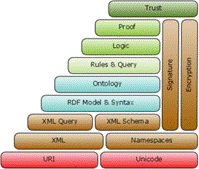 Стек понятий семантической паутины Другой подход к построению семантической паутины предлагает компания AdaptiveBlue, которая разработала модуль BlueOrganizer. Суть этого подхода состоит в том, что когда вы заходите на какой-либо сайт, модуль автоматически определяет его тематику и извлекает аналогичную информацию с других сайтов и служб данной тематики. Поэтому сегодня сторонники семантического Web`а делятся на несколько лагерей: тех, кто поддерживает идеи Тима Бернерса-Ли, например, Нова Спивак, руководитель Radar NetWorks, и тех, кто верит в возможности искусственного интеллекта, таких как Алекс Айскольд, главный управляющий AdaptiveBlue. Некоторые же предлагают еще и семантические поисковые системы. Суть идеи состоит в усовершенствовании привычной поисковой модели Google и выйти за рамки поиска по ключевому слову, тем самым приблизившись к модели запросов на естественном для человека языке. Мультимедиапаутина Поиск в Сети осуществляется в основном по ключевым словам. Именно с их помощью мы осуществляем поиск как текстовой информации, так и мультимедиа. Сегодня поиск мультимедиа производится по текстовым описаниям медиафайлов. И если вы хотите найти фотографию Билла Гейтса, например, то вы вводите его имя в поисковик и надеетесь, что при переборе всех графических файлов с описаниями "Билл" и "Гейтс" найдутся нужные. Однако здесь все зависит от качества описания файлов, и зачастую многие полностью соответствующие искомым файлы пропускаются, в то время как "мусор" проскакивает в результаты поиска. А почему бы не искать музыкальные композиции, например, по их фрагментам? Ojos и Polar Rose работают над поиском по образцам мультимедиафайлов. Например, по фрагменту песни любимой рок-группы вы сможете получить ссылки на другие похожие произведения других исполнителей, а введя в поисковик фотографию любимой картины, в итоге получите сотни других произведений живописи. В настоящее время уже существует несколько служб, в которых подобная концепция реализована. Ojos, весной 2006 года представила Web-инструмент обмена фотографиями Riya, который автоматически снабжает тегами изображения, используя технологии распознавания черт лица. Точность этого инструмента находится на весьма высоком уровне, и Ojos планирует распространить эти технологии для поиска изображений в масштабах всемирной сети. В рамках этой идеи компания запустила службу Like.com, которая представляет собой средство для поиска товаров. Пользователь выбирает фотографию нужного ему товара, а служба находит и демонстрирует другие похожие продукты. Существует аналогичная служба и для аудиоматериалов, именующаяся Pandora. Она создана группой любителей музыки и специалистов, которая, начиная с 2000 года, проанализировала и проаннотировала музыкальную структуру песен более 10 тысяч исполнителей. IBM и BBC в марте 2007 года заявили о создании поисковой системы, способной производить поиск по содержимому видеофайлов. Вторым этапом реализации проекта должно стать создание архива из 1.5 миллиона часов видеозаписей ВВС. Вездесущая сеть Сегодня Web вышел далеко за рамки настольных компьютеров и ноутбуков. Всемирная паутина доступна с телефонов и КПК. Предполагается, что Сеть станет доступной буквально везде и с помощью всего, чего угодно. Существуют идеи зеркал для ванной комнаты, подключенных к Интернету, окон, получающи