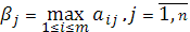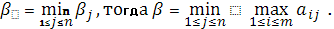 Таким образом, для любой стратегии Yj игрока P2 наибольший его проигрыш равен βj . В интересах игрока P2 выбрать стратегию с минимальным показателем неэффективности. Наименьшее из чисел βj обозначим β :