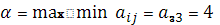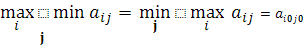 Число β называется верхней ценой игры в чистых стратегиях , а стратегия Yj0 , которая максимизирует показатель неэффективности βj называется минимаксной стратегией игрока P2. Теорема 3 . Для элементов платежной матрицы имеют место неравенства: