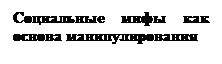 Мифы составляют фундамент всей иллюзорной картины мира, создаваемой манипуляторами. Так, несущими конструкциями коммунистической системы манипулирования выступали мифы о частной собственности как о главном источнике социального зла, о неизбежности краха капитализма и торжества коммунизма, о руководящей роли рабочего класса и его коммунистической партии, о единственно верном социальном учении — марксизме-ленинизме. В США, по мнению американского профессора-либерала Герберта Шиллера, главными идеями, утверждающими господство правящей элиты, выступают пять социальных мифов: об индивидуальной свободе и личном выборе граждан; о нейтралитете важнейших политических институтов: конгресса, суда и президентской власти, а также СМИ; о неизменной эгоистической природе человека, его агрессивности, склонности к накопительству и потребительству; об отсутствии в обществе социальных конфликтов, эксплуатации и угнетения; о плюрализме СМИ, которые в действительности, несмотря на их обилие, контролируются крупными рекламодателями и правительством и представляют собой единую индустрию иллюзорного сознания[1] .