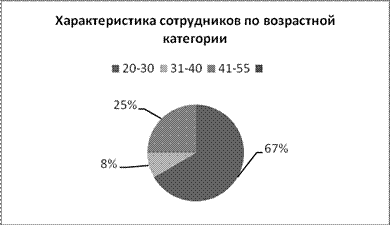 При прохождении организационно-управленческой практики в г.Искитиме «Х» было отмечено, что в большинстве работают молодые люди, до 30 лет.