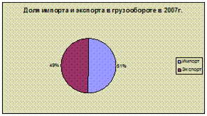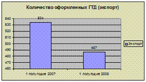Рис. 3.2. Доля импорта и экспорта в грузообороте таможенного поста «Аэропорт Нижний Новгород» в 2007-2008гг. По данным таблицы 3.5. и рис. 3.2. мы можем отметить значительное увеличение импорта (с 51% до 73%) в грузообороте таможенного поста «Аэропорт Нижний Новгород» в 2008г. Из них 1,436 тыс. являются юридическими лицами и 865 - физическими лицами. В связи с изменением доли импорта в грузообороте, произошло и изменение оформленных ГТД. Более наглядно это можно увидеть на рисунке 3.3.