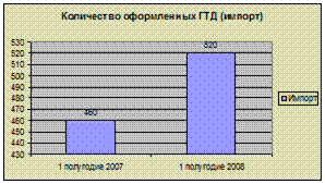 Рисунок 3.3 Изменение количества оформленных ГТД в 2007 – 2008 гг. Рассмотрим режимы таможенного оформления на таможенном посту «Аэропорт Нижний Новгород» в таблицах 3.6 – 3.7. Таблица 3.6 Процессы таможенного оформления ГТД по таможенным режимам (импорт)