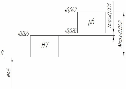 Рис. 6. Минимальный натяг: Nmin = 0,002 мм. Максимальный натяг: Nmax = 0,030 мм. Посадка наружного кольца подшипника в корпус: Ø80
