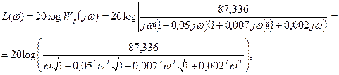 Среднечастотный участок определяет устойчивость, запасы устойчивости и, следовательно, качество переходных процессов. Так как в ТЗ задан показатель колебательности, то для построения данного участка необходимо воспользоваться методом Бесекерского. Постоянные времени определяются по формулам: