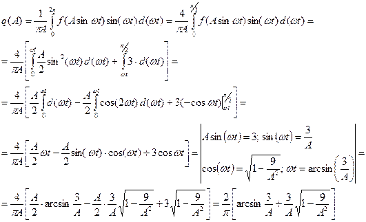 где В данном случае рассматривается нелинейный элемент типа «насыщение», описываемый однозначной нелинейностью. Для всех однозначных нелинейностей
