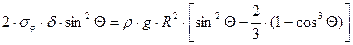 отсечём верхнюю часть оболочки и составим для неё уравнение равновесия. Выбираем оси координат так, как показано на рис. 2. Из уравнения равновесия и уравнения Лапласа получаем выражения для