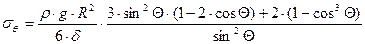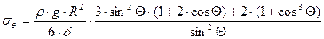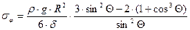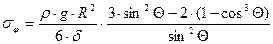 Расчёт на прочность производим по максимальным погонным усилиям. Определяем напряжения в нижнем полюсе бака: где Подставив в эти формулы выражения для погонных меридиональных и кольцевых усилий, получим: