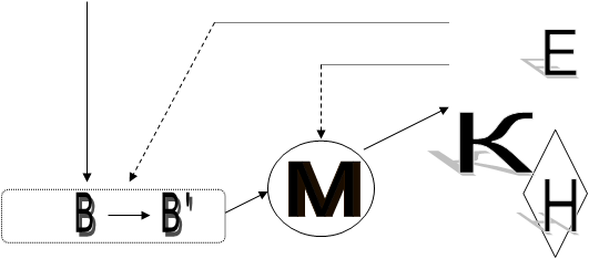 Ця інформація передається в блок керування (К) (прийняття рішень), див також мал 1. На основі цієї інформації в залежності від рівня науково-технічних розробок (Н) та економічних можливостей (з врахуванням еколого -економічних оцінок) (Е) вживаються заходи по припиненню або обмеженню антропогенного впливу, профілактичному “зміцненню” та подальшому лікуванню елемента біосфери. Безумовно, можлива комбінація згаданих вище підходів. Удосконалюється відповідно й система моніторингу (вказані дії показані на схемі штриховими лініями). Варто зазначити, що так як оцінка фактичного та прогнозованого спну природного середовища є складовою частиною моніторингу, деякі автори ідентифікують цю частину моніторингу з елементом управління станом природного середовища. Спостереження за станом довкілля повинні включати в себе спостереження за джерелами та факторами антропогенного впливу (також за джерелами забруднень, шкідливих випромінювань і т. п.), за станом елементів біосфери (також за відповіддю (реакцією) живих організмів на вплив, за зміною їх структурних і функціональних показників). При цьому мається на увазі отримання даних про первісний (або фоновий) стан елементів біосфери.