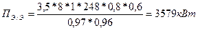 где: Пэ/э- потребность в электроэнергии; ∑Nсут - установленная мощность оборудования, квт; Тсм - продолжительность смены; H0 - коэффициент одновременного включения, 0.4 – 0,8; Нс - коэффициент, учитывающий потери в сети, 0.97; КПД- коэффициент полезного действия, 0.96.