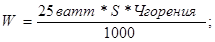 где: Wосв- кол-во осветительной э/энергии, кВт-час; 25 ватт - удельный расход э/энергии на 1 м2 площади; S- площадь здания, м2 ; Ч- часы горения, час. Площадь принята 80 м Часы горения = Др *Тсм Часы горения = 248 * 5 = 1240 час