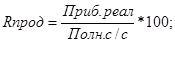 где: Rпрод – рентабельность продукции, % Приб. реал. – прибыль от реализации, руб. Полн. с/с – полная себестоимость, руб.