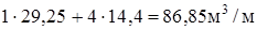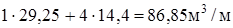 где hn - толщина снежного покрова 1 м.; В- ширина траншеи по низу 2,2 м.
