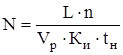 где L- длина обслуживаемого участка автомобильной дороги, км.; n- число проходов снегоочистителя необходимого для полной уборки снега по всей ширине земляного полотна; Vр - рабочая скорость снегоочистителя 30 км/ч.; Ки - коэффициент использования рабочего времени снегоочистителя; tн - допустимое время снегонакопления.
