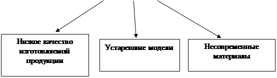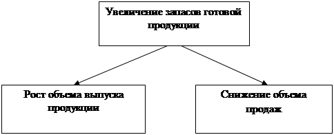 Рисунок 4. Первый уровень «дерева факторов» Большую долю для роста остатков готовой продукции на складе сыграло снижение объемов продаж. Факторы, влияющие на эту проблему отобразим на втором уровне «дерева факторов» (рисунок 5).
