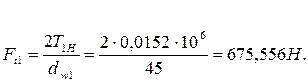 По [12] приймаємо: 1.5.2 Визначення навантажень, що діють на валОсновними навантаженнями, що діють на вал, є зусилля в зубчатих зачепленнях, а також крутильні моменти. Визначимо сили, що діють в передачах.