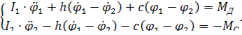 Диференціальні рівняння складаються на основі узагальненої координати, кута закручування валів