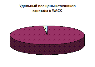 Рис. 2.2. Сравнение удельного веса источников капитала в общей сумме и их удельного веса в WACC за 2005 год Таблица 2.4. - Расчет WACC за 2005 год