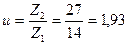 3.1 Рассчитываем передаточное число зубчатых колес:
