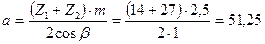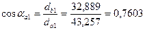 Определяем угол профиля зуба в точке на окружности вершин шестерни и колеса:
