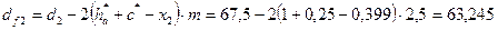 Определяем диаметр вершины зубьев шестерни и колеса: Определяем диаметр впадины шестерни и колеса: Проверка вычислений межосевого расстояния: 3.3 Рассчитываем размеры для контроля взаимного положения разноименных профилей зубьев. Определяем нормальную толщину шестерни и колеса: 3.4 Рассчитываем размеры для контроля номинальной поверхности зуба. Определяем основной диаметр шестерни и колеса: