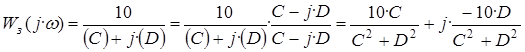 Для удобства работы по разбиению передаточной функции на вещественную и мнимую составляющие, обозначим слагаемые знаменателя буквами и производим необходимые действия: