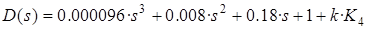 Определяем передаточную функцию замкнутой системы, учтя замкнутую петлю обратной связи и то, что, при вычислении передаточной функции разомкнутой системы, происходило дополнительное домножение на K4 :