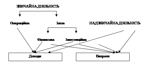 Рис.3. Класифікація доходів, витрат і результатів у Звіті про фінансові результати. Отже, фінансовий результат від інвестиційної діяльності згідно з ПСБО№3 визначається в розрізі звичайної діяльності:
