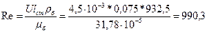 С учетом значений найденных по формулам (3.1.7) и (3.1.8) определим число Re