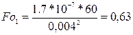 Рассчитаем Fo через каждые 60 с нагрева кости: