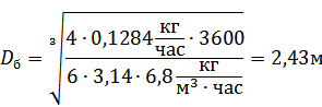 Расчёт скорости движения воздуха на выходе барабанной сушилки. Скорость движения сушильного агента в выходном сучении барабана Wв связана с диаметром барабана Dб уравнением расхода: