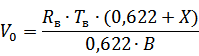 где V0 – условный удельный объём воздуха, который может быть рассчитан по формуле: