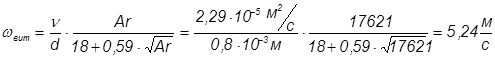 Скорость уноса основной фракции частиц высушиваемого материала определим по формуле Тодеса [13], стр.235, ф.(2.72):