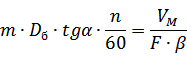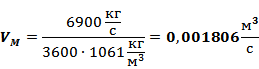 где VM – объёмный расход материала, м3/с; F – поперечное сечение материала, м2;