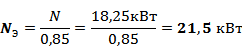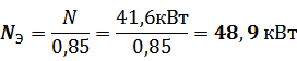 Мощность электродвигателя по каталогу (из [1], стр. 15) 55кВт.