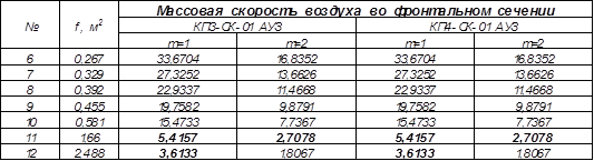 где f – площадь фронтального сечения калорифера из [1], стр.43, табл.4.1, m – количество калориферов в ряду (для первой схемы m = 1, для второй m = 2). Результаты расчетов свели в таблицу: