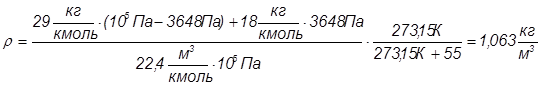 где Масв=29 кг/кмоль – молярная масса воздуха, Mв=18 кг/кмоль – молярная масса воды.