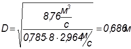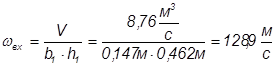 Вычислим скорость во входном патрубке каждого из циклонов из [11], стр.19: