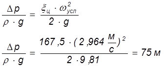 Примем режим работы циклона из условия оптимальной работы циклона серии ЦН в пределах 50–100 м: