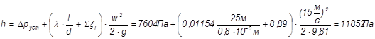 Значение соответствует развитому турбулентному режиму. По формуле Никурадзе [4], стр,160, ф.(2.28в) определили коэффициент гидравлического сопротивления трубопровода: