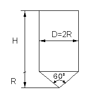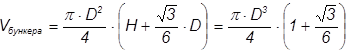 Поскольку полный объем бункера равен двухчасовому объему материала, а высота цилиндрической части обычно почти равна его диаметру, то получим следующее уравнение: