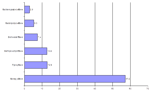 Рисунок 1 - Доля ОАО «АСБ Беларусбанк» среди общего количества карточек, эмитированных банками Республики Беларусь (на 01.01.2010г.)» Примечание - Источник: [28,с.10] Таким образом, расширение сети пунктов обслуживания держателей карточек позволило реализовать деятельность ОАО «АСБ Беларусбанк» по диверсификации способов обслуживания клиентов и создать базу по увеличению операций с использованием расчетов пластиковыми карточками. За 2009г. было выпущено 153,4 тысячи штук кредитных карт ОАО «АСБ Беларусбанк», что в 4 раза превысило уровень 2008г., при этом объем кредитов, выданных населению в целом, составил 434 млрд. руб. в 2009 году, что на 86% выше показателя 2008 года [28,с.10]. Таким образом, можно сделать вывод, что темп роста кредитных карточек опережает темп роста объемов кредитования в целом. Дальнейшее развитие кредитных карточек является одним из приоритетных направлений деятельности банка. Об этом свидетельствует тот факт, что 42% выпущенных в 2009г. ОАО «АСБ Беларусбанк» пластиковых карт занимают кредитные карты (Рис. 2).